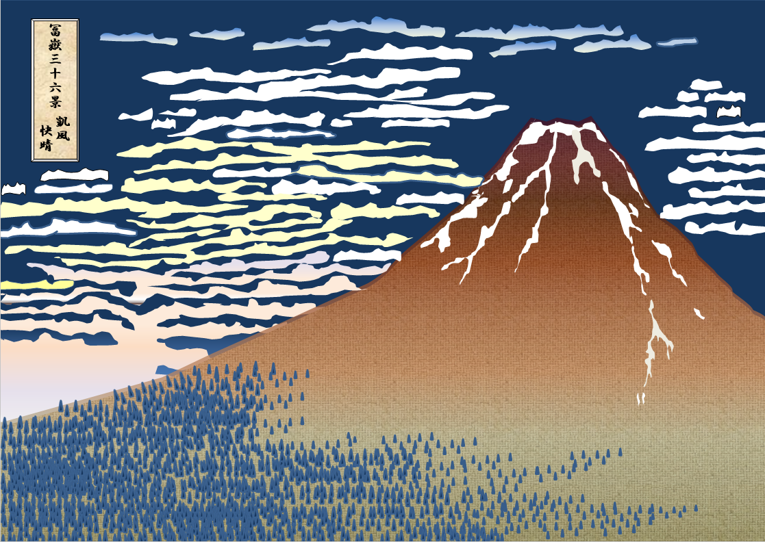 画題 飾北斎の富嶽三十六景から「赤富士」